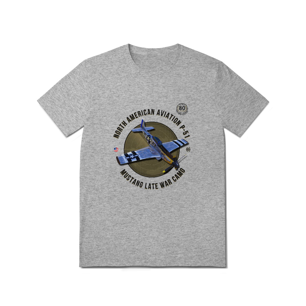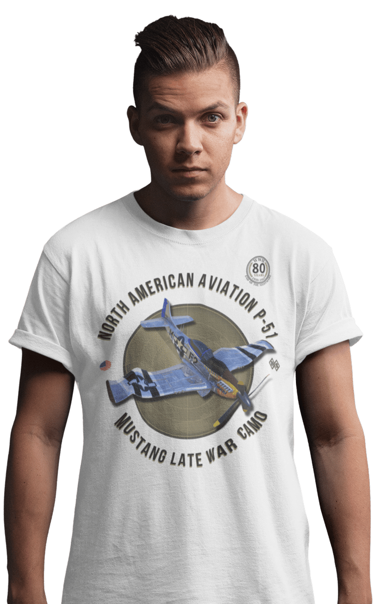 Esta camiseta apresenta o avião P-51 Mustang, uma das aeronaves mais emblemáticas da aviação mundial entre 1939-1945. A estampa faz parte de nossa coleção "WWII 80 anos, O Fim do Pesadelo", que documenta importantes peças da engenharia aeronáutica do século XX.