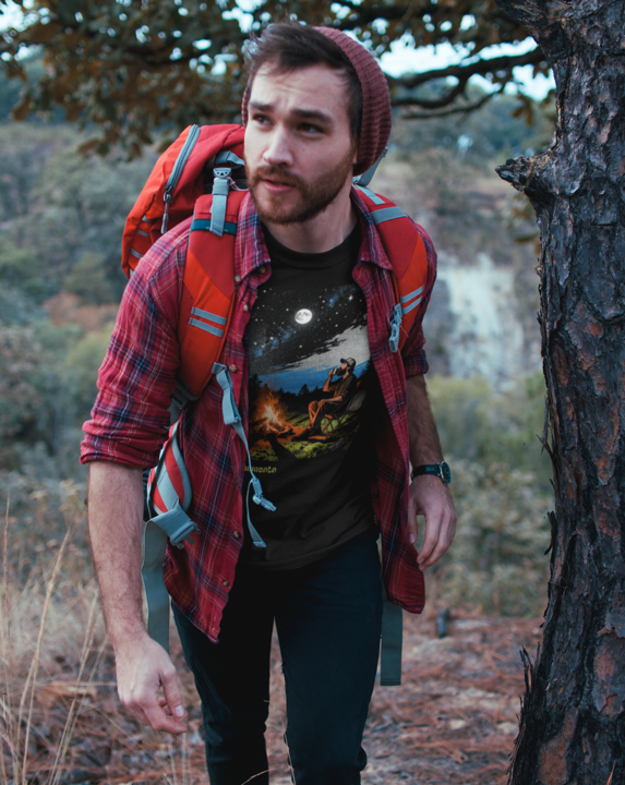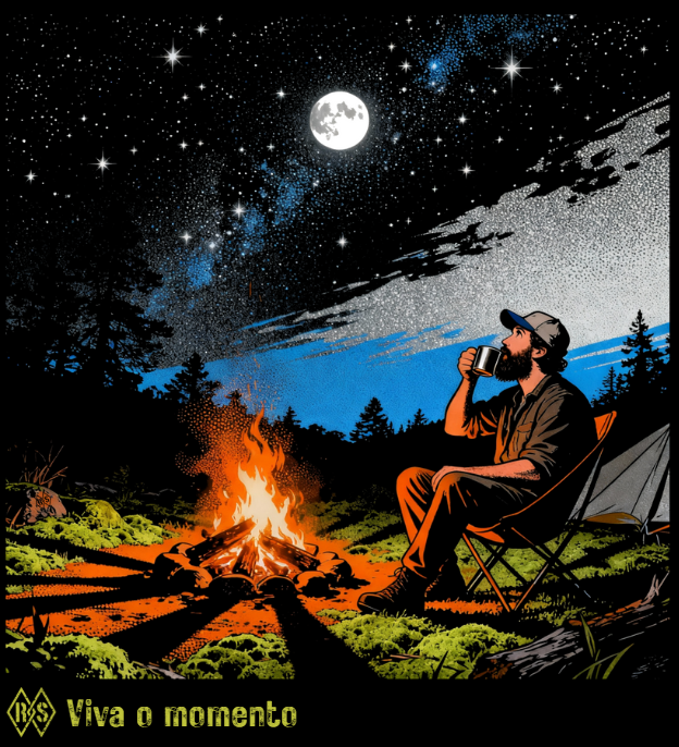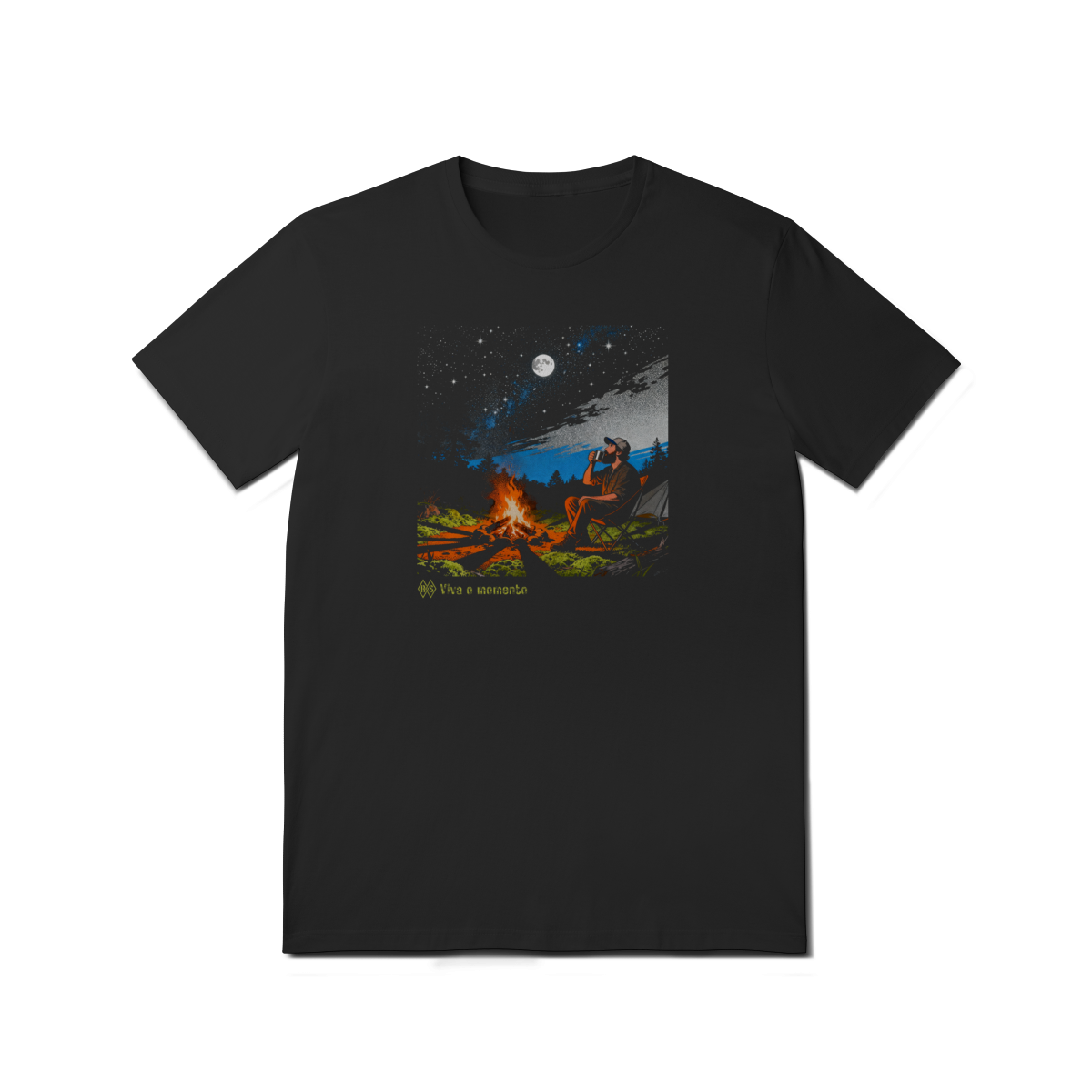Esta camiseta celebra o espírito Bushcraft e a filosofia de quem entende que a vida acontece longe do relógio, entre o estalar da fogueira, o cheiro do café fresco e o brilho das estrelas. Um tributo aos que encontram paz no silêncio e liberdade no agora.