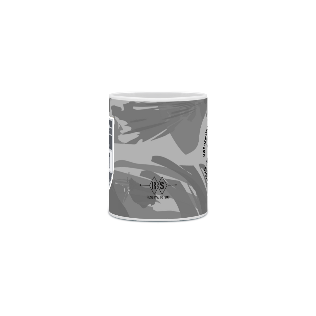 Esta caneca em tom de cinza campanha leva o brasão desta histórica Unidade Militar do Exército brasileiro e o símbolo da Arma de Infantaria: a granada e os fuzis cruzados por baixo.