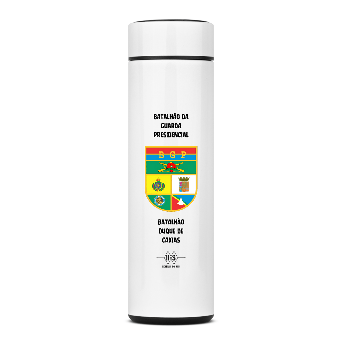 Agora você terá sua própria garrafa térmica personalizada do Batalhão da Guarda Presidencial - Granadeiros para tomar sua água ou bebida de preferência, seja quente ou fria.