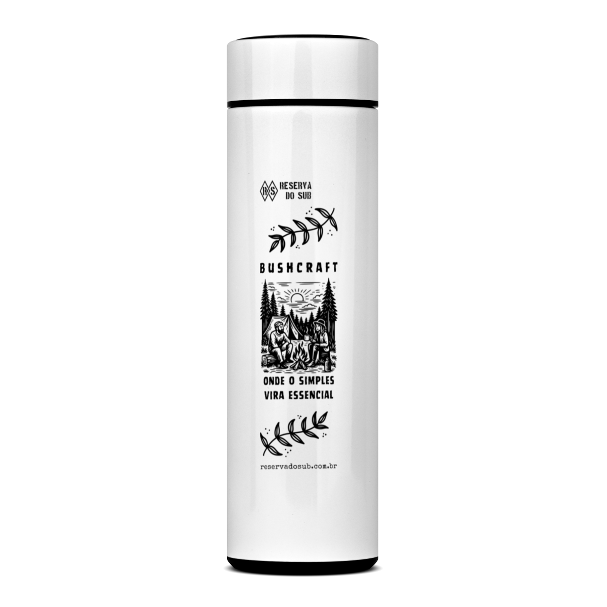 Agora você leva com você a garrafa térmica oficial da coleção Bushcraft “Onde o simples vira essencial”, feita para quem sabe que água quente ou fria pode ser a diferença entre conforto e desafio na vida fora da rotina.