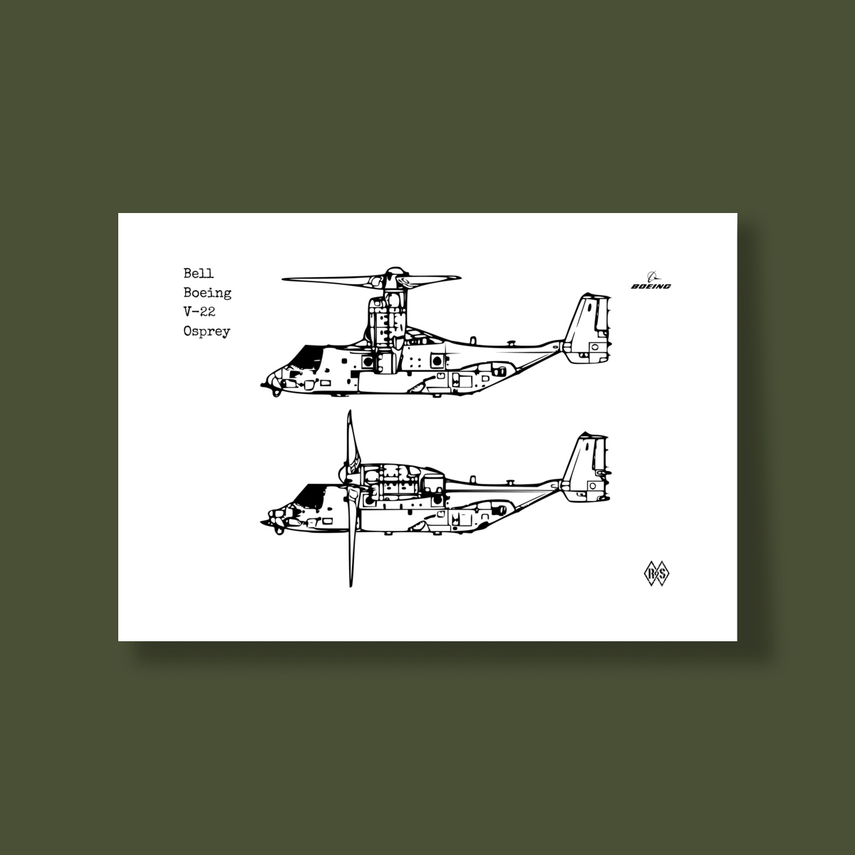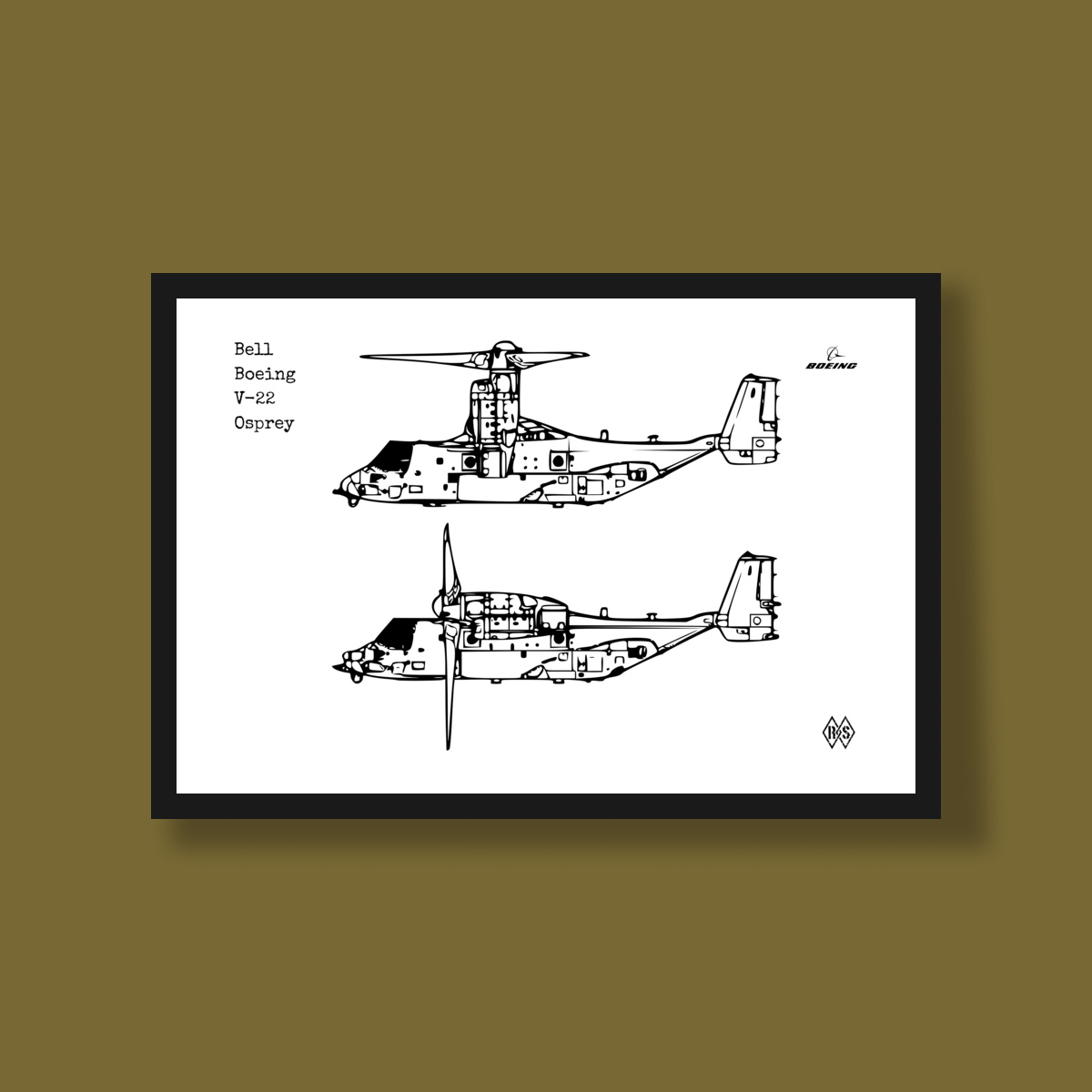 Mais do que um pôster, é o projeto de uma revolução alada. Este blueprint desvenda a engenharia única do Bell Boeing V-22 Osprey, a aeronave que redefiniu a aviação ao unir a versatilidade do helicóptero com a velocidade e o alcance do avião. Se tu admiras inovação radical e soluções de engenharia que desafiam convenções, esta peça é para a sua parede.