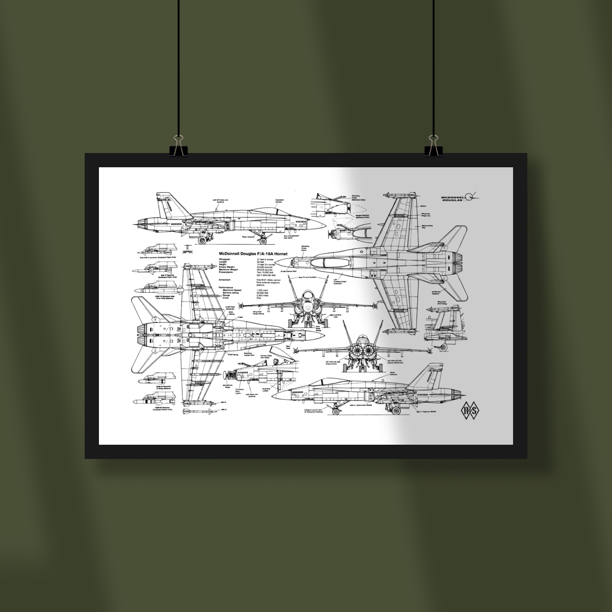 Poster McDonnell Douglas FA18 Hornet - Blueprint